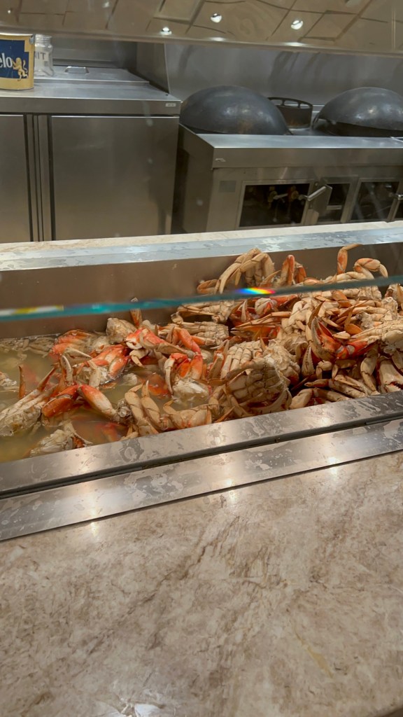 For $55 (+tax and gratuity is a total of about $70 for adults), you get access to a buffet that has lobster, crabs, prime rib, pizza, pasta, asian dishes, salad bar, and a good selection of desserts!