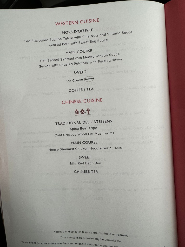 I chose the Japanese cuisine. It was glorious! The note indicated that “the menu was created by chef Motozaku Nakamura, the 6th owner of Michelin 3 star restaurant “Nakamura” Kyoto Cuisine.”