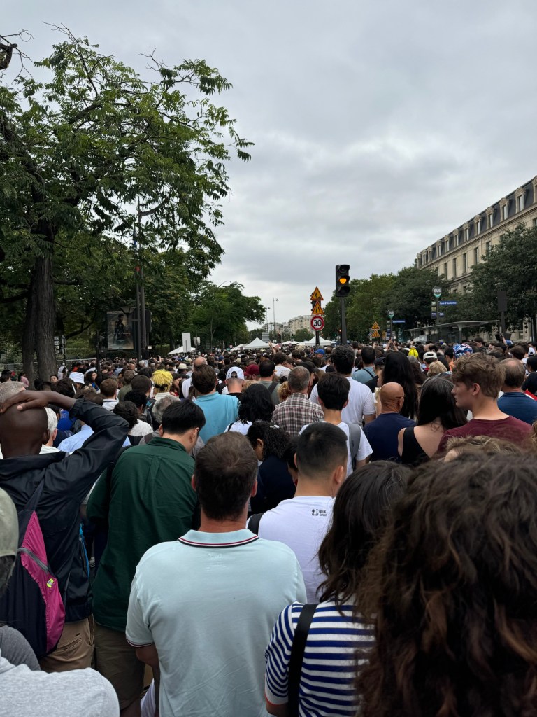 This was the last event we had tickets for and the most awaited since it’s in a temporary stadium with the Eiffel Tower in the background. The event was scheduled to start at 8:00 PM. We got out the metro by 7:20 PM and walked about 15 minutes to our entrance. It wasn’t an organized line… squeeze in until you get filtered through the gate.