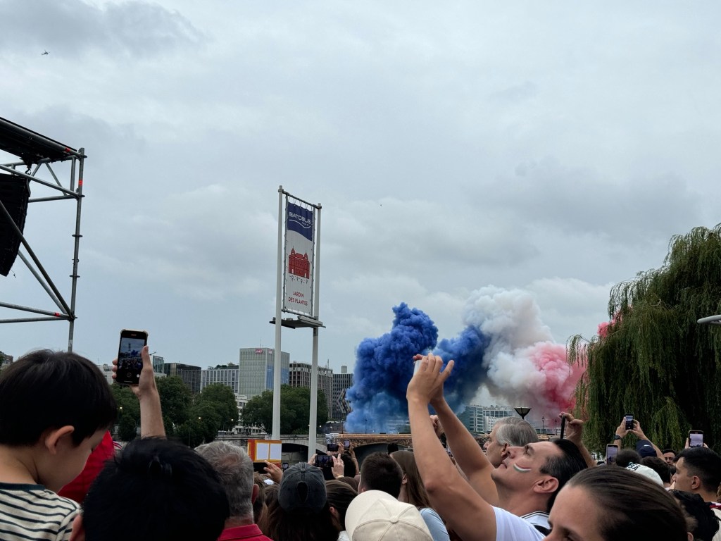 The opening ceremony started promptly with the boat parades, fireworks, jets flying over spewing colored smokes displaying shapes and France colors, and a whole lot of entertainment including prerecorded and live performances.