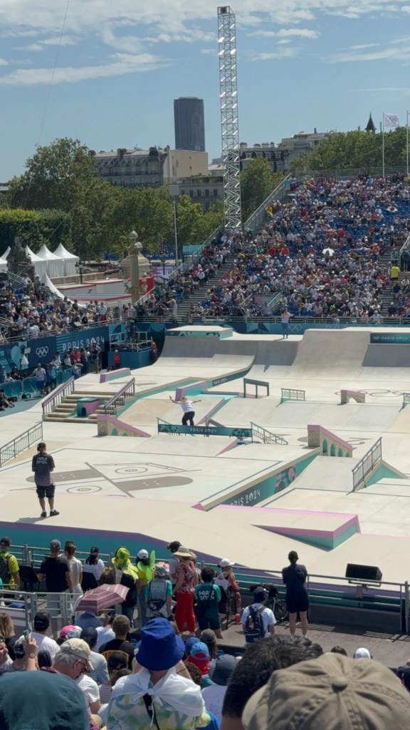 We got to our access point around 10:30AM and did not get in until almost noon. We had a few minutes to order food and drinks before the skateboarding event starts. By the time we got to our seats, Heat 1 already started so we missed a couple athletes do their trick, including Coco from Japan who won the gold.