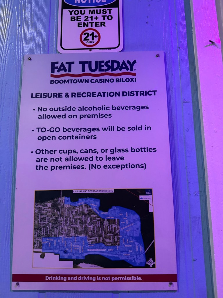 We got a few drinks and just like Biloxi, open-container is allowed on the streets. With some refreshing slushies in hand, we made our way back to the hotel.