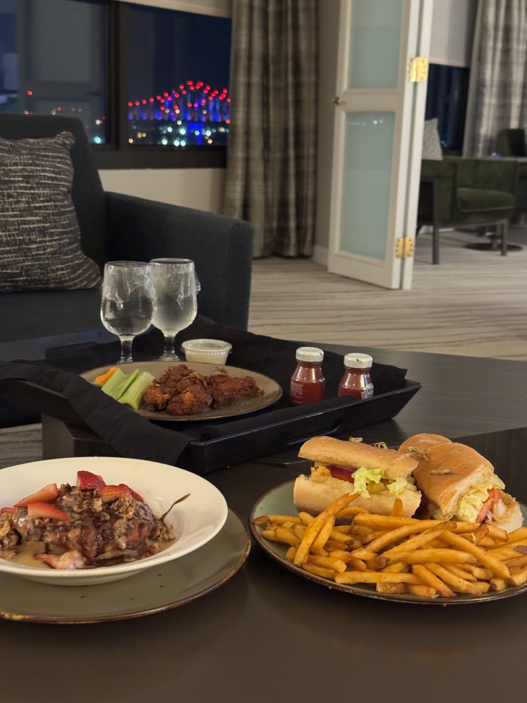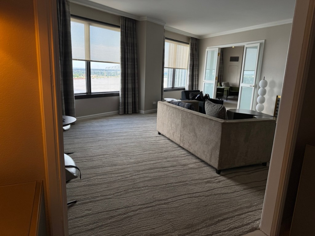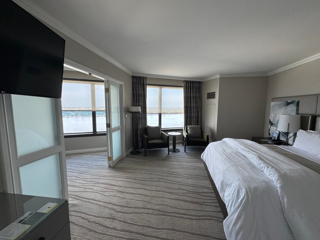 We were upgraded to a corner suite and in the room by 4 PM. The room was gorgeous with the view of the Mississippi River. Naturally, we took a short rest (okay, maybe an hour-ish) before heading back out to explore.