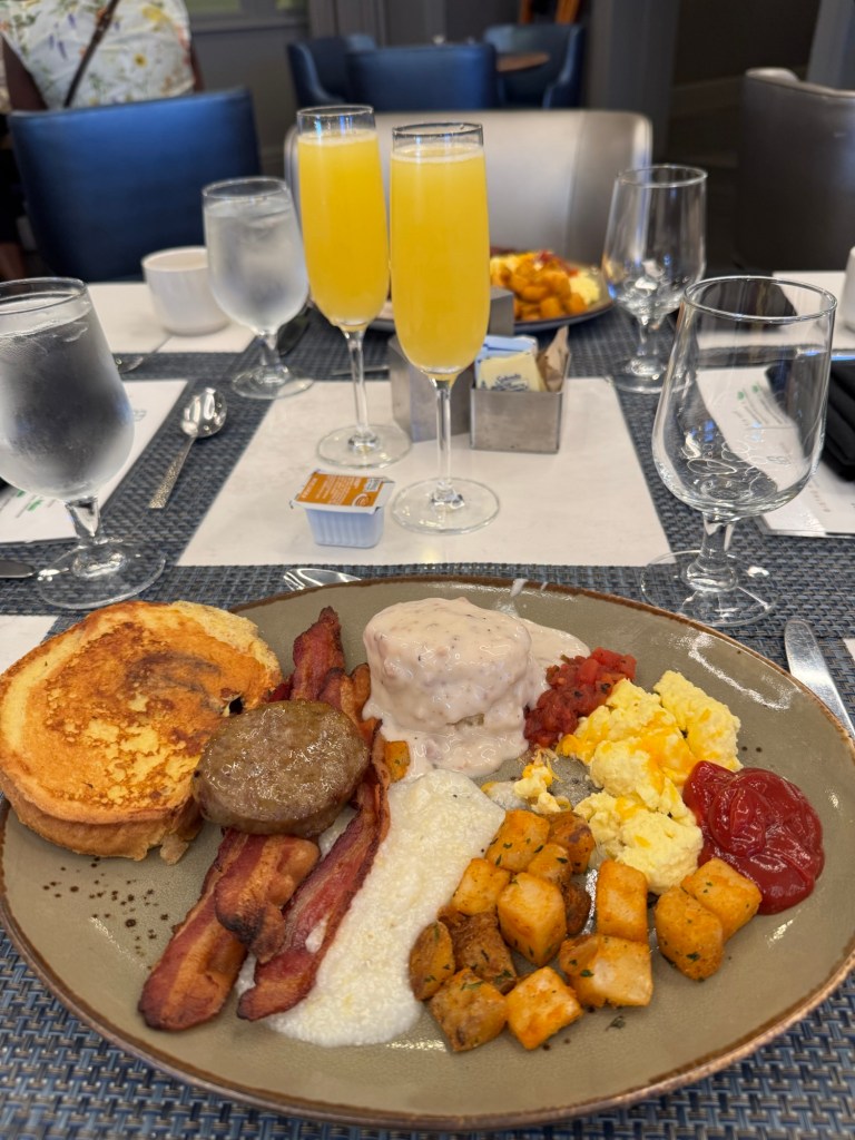 We had brunch at the hotel before checking out. Since our flight was at 6:45 PM, we checked out around 3:30 PM to allow enough time to get gas, return the car, and check our luggage.