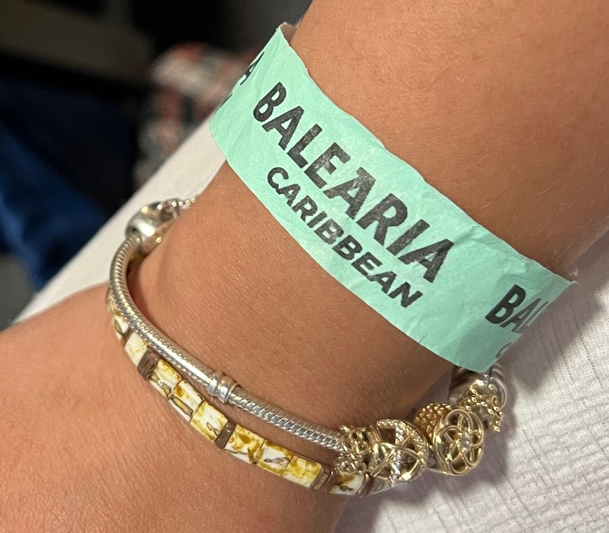 • After being in line for a few minutes, we had our passport checked, wristbands put on, and boarding pass printed. We were directed to sit in the premium waiting area and didn’t get to board until about 8:45 AM. The ship left at 9:07 AM.